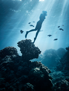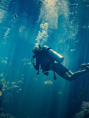 Plunge into the depths and explore an underwater world filled with vibrant marine life and colorful coral reefs.